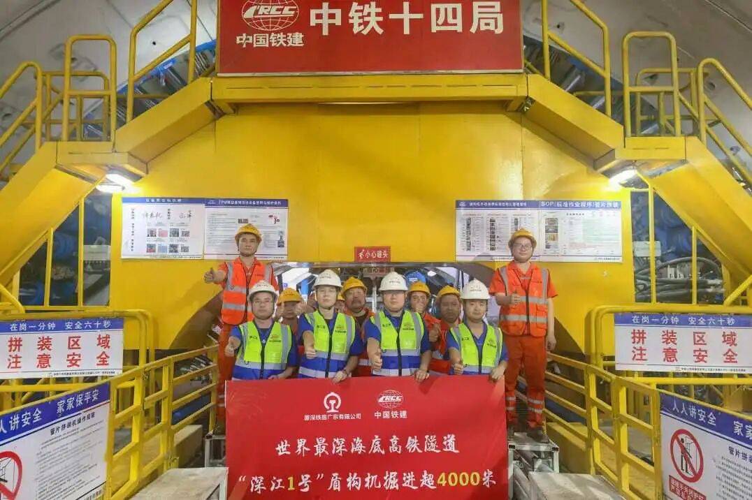 深江铁路控制性工程珠江口隧道“深江1号” 盾构机掘进突破4000米,标志着世界最深海底高铁盾构隧道迈上新台阶。